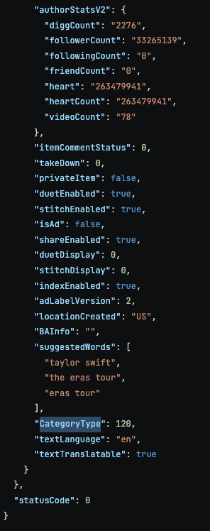 Although TikTok does not show the category directly, you can infer it by using the TikTok API with the Get Post Detail endpoint For example: